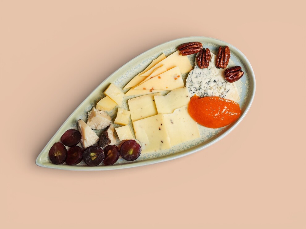 По истине французское блюдо! Состоит из четырех видов сыра: сливочный пармезан, пикантный белпер ,гауда с пажитником, мон блю с благородной голубой плесенью. Дополняется ароматным цветочным медом.