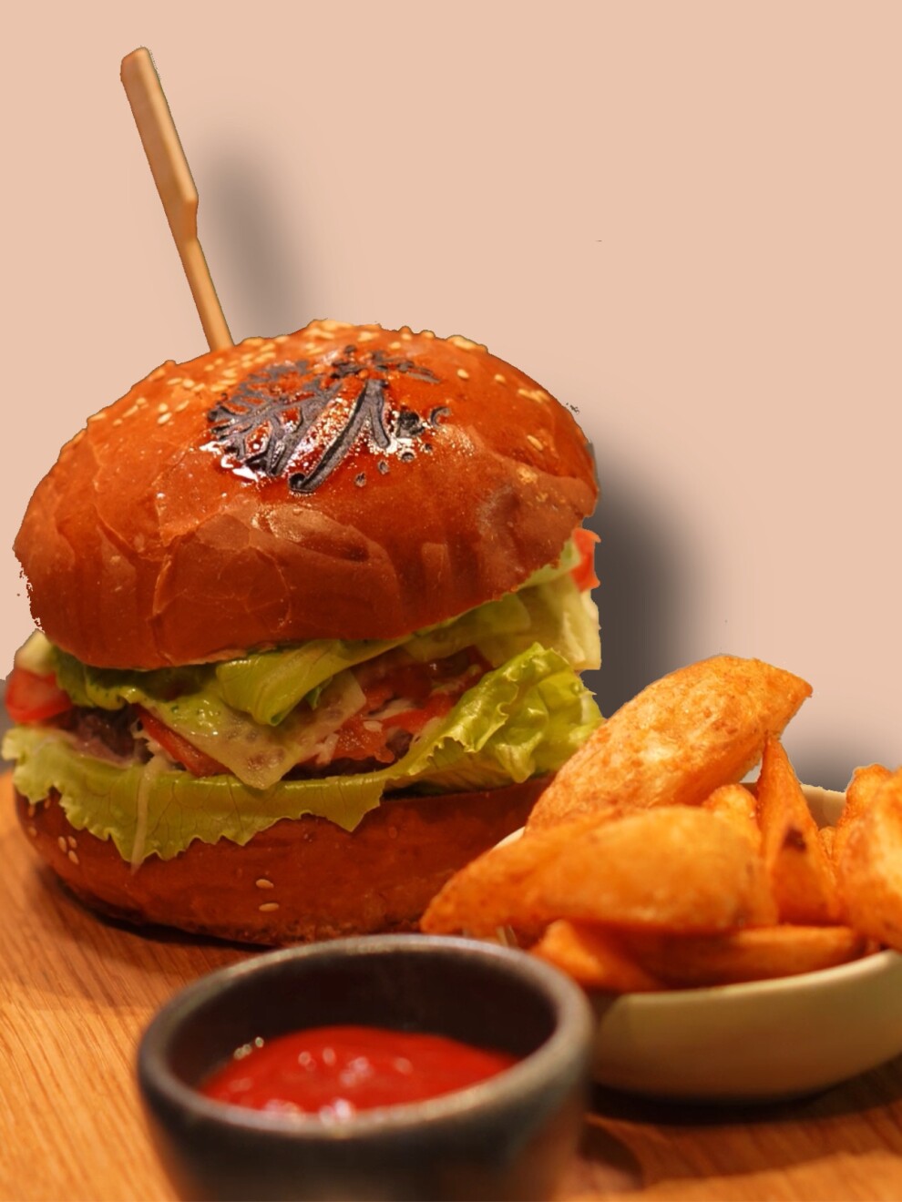 Сочная котлета из оленины, свежие овощи, хрустящий салат и булочка, которую мы выпекаем сами. Добавили еще картофель по-деревенски. Он достоин быть у вас на столе!