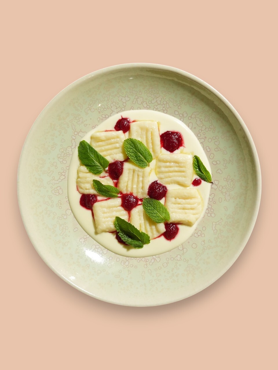 Ленивые вареники с соусом из белого шоколада и малиновым соусом