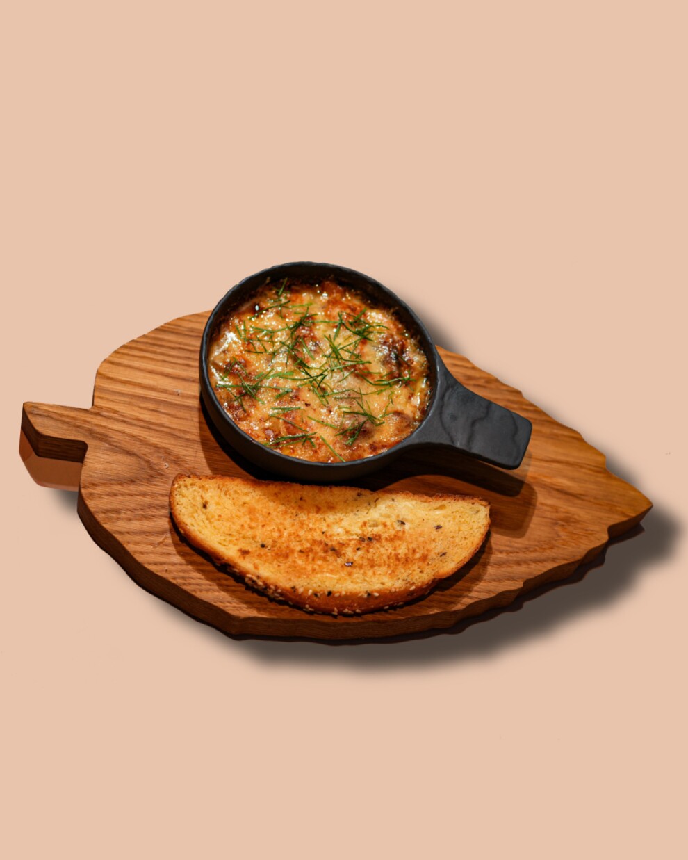 Запеченные грибы в сливочном соусе до золотистой корочки и ароматный, глубокий сыр раклет.