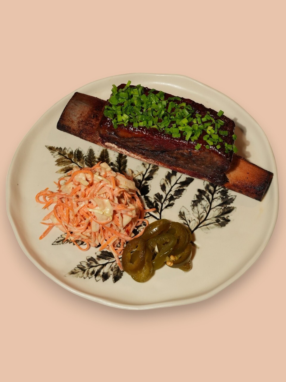 Томлёное говяжье ребро с соусом барбекю и салатом коул слоу