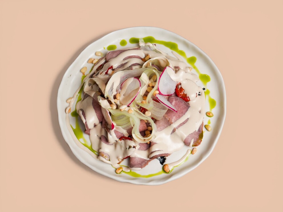 Блюдо, которое сочетает в себе изысканность и глубину вкусов. нежные кусочки говядины, аккуратно запеченные подаются с нежной эспумой на основе тунца.